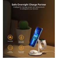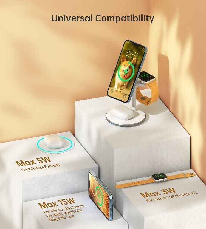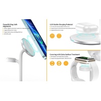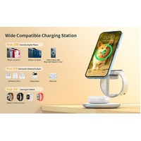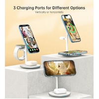 The wireless charger stand acts like a mini stand, holding and charging your iPhone , Apple Watch and AirPods in one place, helping you end the messy cord life and tidy your desktop. 3 charging docks for different charging options as you need.