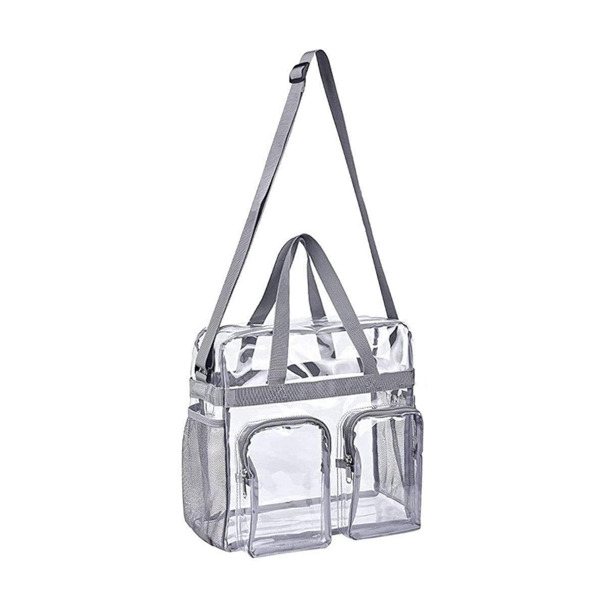 This portable clear handbag is the perfect accessory for keeping essentials visible and organized. Designed with multiple pockets, including two spacious front pockets and side mesh pockets, it provides ample space for quick access to daily necessities. Ideal for events, airports, and stadiums where transparent bags are required, this handbag is both stylish and functional. The durable, waterproof material ensures easy cleaning, and the reinforced straps offer comfort and strength, making it an ideal choice for everyday use.