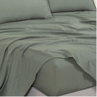 Vintage Washed Microfibre Sheet Set with 2 Pillowcases - Khaki Green - Double