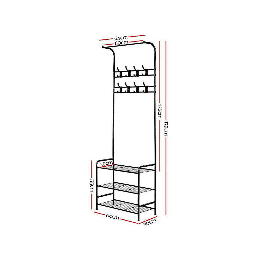 $65.54With its stylish black looks, our Artiss Metal Clothes Rack is beyond just a sleek clothes rack. It also doubles as a storage shelving with three tiers of shelves to store a multitude of items, from handbags, accessories to other personal artifacts. Exuding lots of natural class and style, the coated metal frame is simply meticulous in finish and makes for a great furniture piece for any part of your home. Use it as a hallway hanger and the clothes rack is equally at home. And as a shop display, it makes for a stylish visual merchandising piece too. Better still, the rack can handle up to 5kg in weight with each tier capable of holding 10kg and each hook 2.5kg. In other words, the metal clothes rack is as strong and durable as it stands. The clothes rack also comes with eight hanging hooks for more handy use and anti-slip floor protectors to keep your floors pristine and scratch-free.