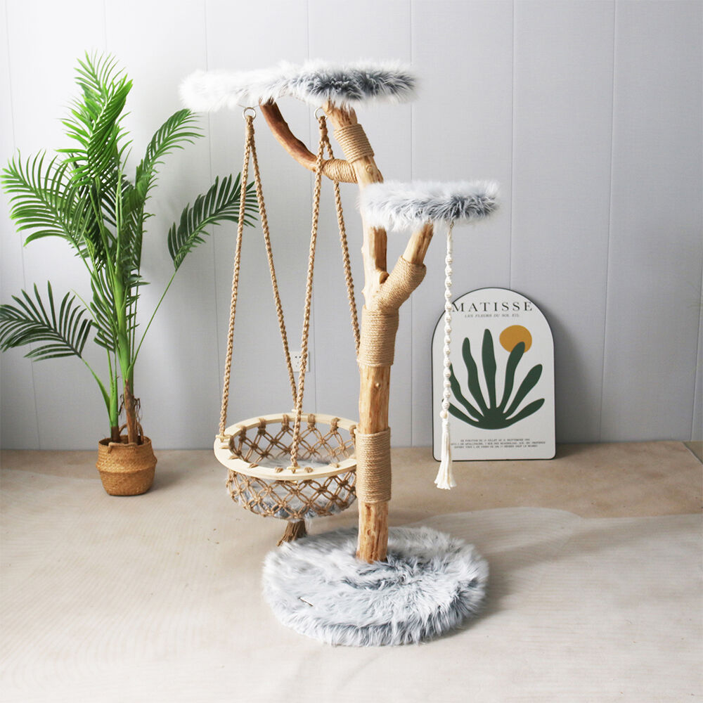 Give your furry companion the ultimate lounging spot with the CMISSTREE Modern Cat Tree with Hanging Hammock, featuring two perches, including a spacious, hanging hammock basket with a luxurious, removable soft cushion. Hand-crafted with care, each cat tower is a one-of-a-kind creation, ensuring that you own a cat tree like no other in the world.