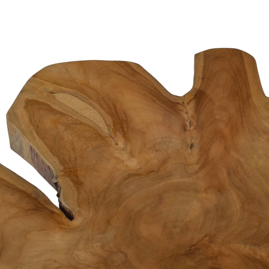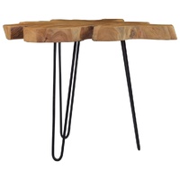 $124.44Equal parts sophisticated and distinctive, this unique wooden coffee table gives a nod to a natural charm and industrial style with its natural shape of the tree and steel legs. Constructed from extremely durable teak hard wood, this piece of teak furniture has been seasoned, kiln dried and then fine sanded to give a very smooth appearance. Teak wood is known for its exceptional strength and is the perfect choice for you to have a long lasting piece of furniture. The elegant steel legs and wood's live edge that follows the natural shape of the tree increase the beauty of the table. Important note: Variations in shape, colour and grain of the wood make each piece unique and slightly different from the next. The delivery is random, ensuring the exclusivity and individuality of your product.