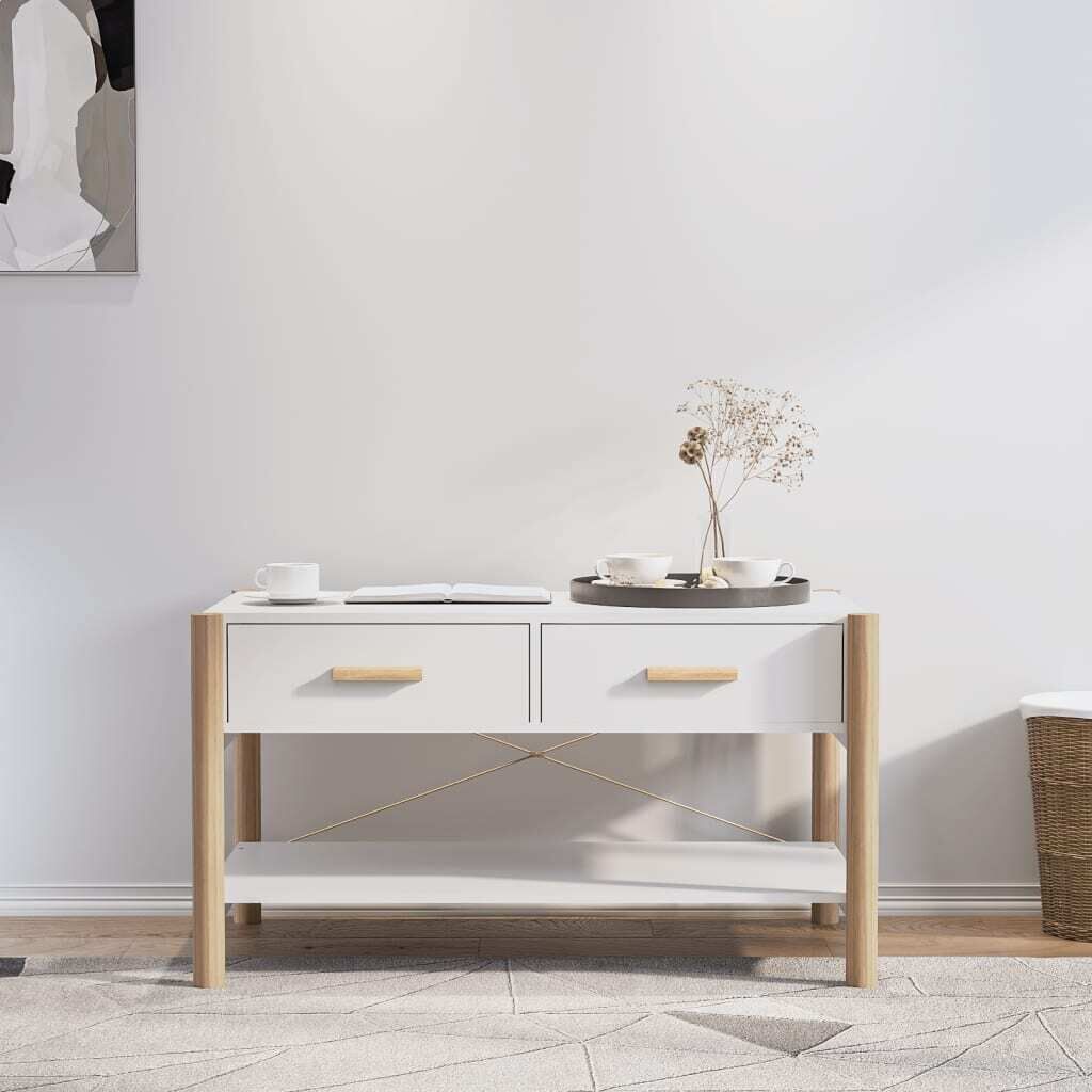 $97.60This classic coffee table is meant to make a decorative and practical addition to your home. Durable material: The engineered wood is of exceptional quality with smooth surface and also features strength, stability, and resistance to moisture.Stable wooden leg: The solid wood leg ensures sturdiness and stability.Ample storage space: The side table provides ample storage space for keeping your daily essentials well organised.Practical tabletop: The tabletop is suitable for placing your drinks, food and other essentials. Note:Each product comes with an assembly manual in the box for easy assembly.