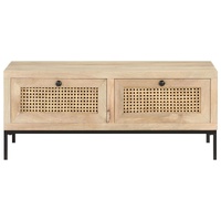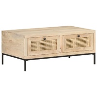 $253.88If you're looking for a simple touch of rustic charm to add to your interior decor, this solid mango wood coffee table is here! Solid mango wood is a tropical hardwood. It on the one hand has the strength to bear the weight, and on the other hand stands the wear and tear of time. Additionally, the exquisite craftsmanship and beautiful wood grains make every piece of couch tables slightly different from the next. The side table is equipped with ample storage room, so you can display or keep any items you'd like well organised. The steel base contributes to its sturdiness and stability. What's more, the end table features hand-woven cane patterns on the drawers, adding to its rustic charming. Important note: The colours vary from piece to piece, making each wooden living room table unique.