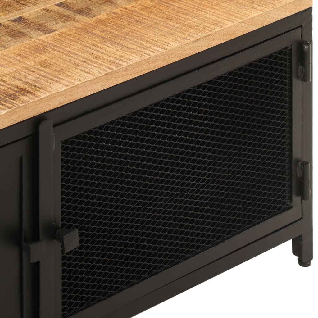 $206.45If you're looking to add a simplistic touch of industrial charm to your existing interior decor, our trendy coffee table is a perfect choice! This side table is made of solid rough mango wood, which is a hardwood with dense grains. Rough mango wood has the strength to bear the weight, and also stands the wear and tear of time. Thanks to its powder-coated iron legs, this beautifully-designed cabinet is stable, durable, and eye-catching. This couch table also provides ample space for storing your multimedia appliances, books, as well as other items. Important note: The colours vary from piece to piece, making each piece unique. The delivery is random as well.