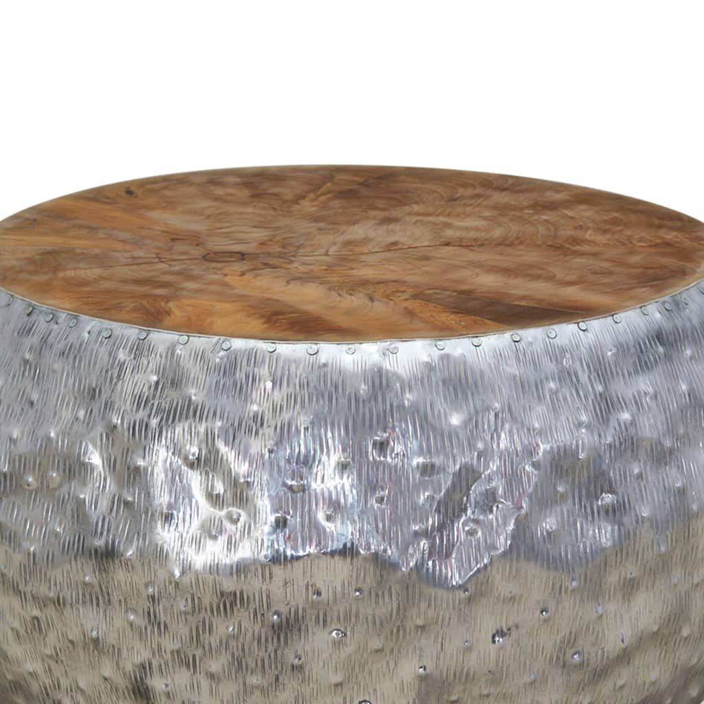 $255.74This stunning round coffee table has a unique design and will complement your home decor. The tabletop, made of genuine teak, is ideal for placing remote controls, books, magazines, or other items you'd like to keep within reach. Thanks to the sturdy aluminium construction, this coffee table is durable and easy to clean with just a damp cloth. It can also be used as a side table, nightstand, plant/lamp/telephone stand, etc. It is already assembled; no assembly is required. Relax and enjoy entertaining your family and friends around this unique coffee table!