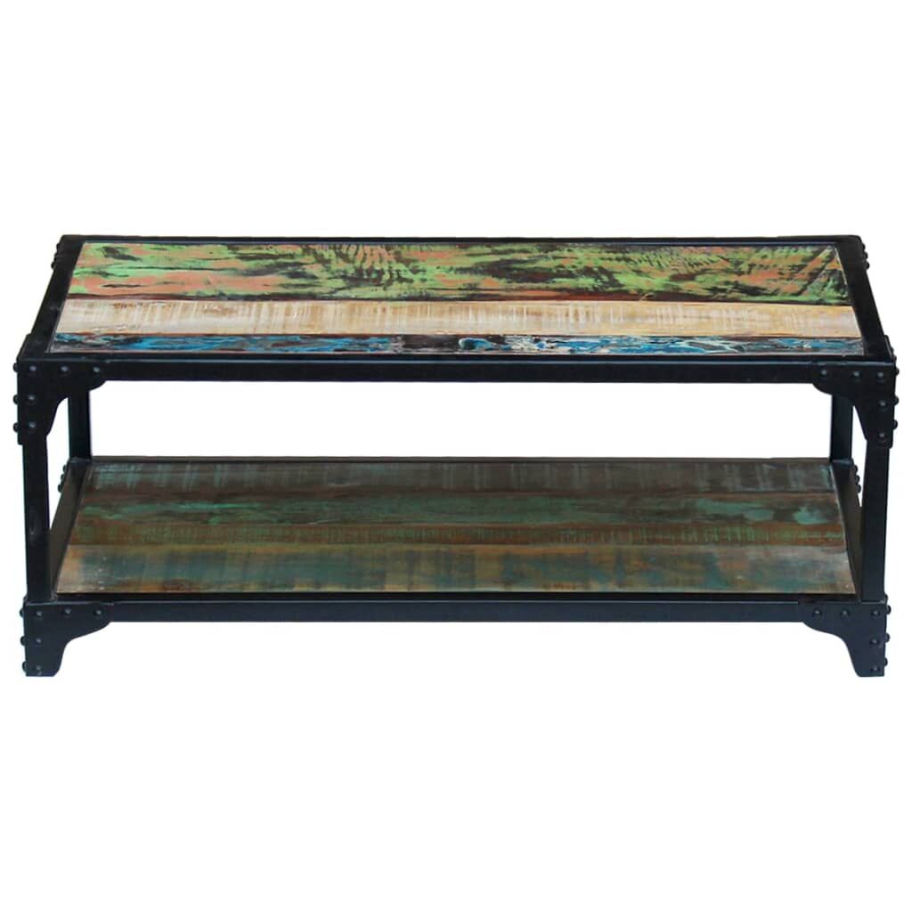 $208.31This vintage-style wooden coffee table, made of solid reclaimed wood, will make a timeless addition to your home. Thanks to the strong steel frame, the coffee table is very steady and durable. The tabletop provides a stable and secure surface on which you can place your drinks, a fruit basket or vase or other decorative items. The shelf on the bottom provides ample space for storing multimedia appliances, books, magazines, and other items you want to keep within reach. The coffee table can also be used as a couch table, living room table, side table, etc. The coffee table is made of recycled wood, which means every piece of furniture is unique and slightly different from the next. Furniture made of reclaimed wood has the characteristics of different woods, like teakwood, acacia, mango wood, saal wood, etc. Reclaimed wood is solid, stable, durable, and beautiful. Signs of wear and visible grain structure give each piece its own history and unique look. The table is fully handmade, and the craftsmanship adds to its spectacular retro style. Every step of the process is carried out with the greatest care, be it recombining, polishing, painting or waxing. Important note: Colours vary from piece to piece, making each of our coffee tables unique. The delivery is random, ensuring the exclusivity and individuality of your product.