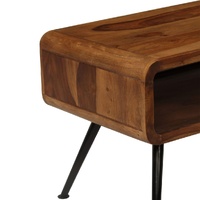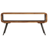 $254.81Our solid Sheesham wood coffee table exudes a vintage charm and will make a distinctive addition to your home. It can also be used as a side table, couch table and end table. This wooden table is made of solid Sheesham wood, which is durable and beautiful. Sheesham is a tropical hardwood that is famous for its rich grains and also known as rosewood or palisander. Every step of the process is carried out with the greatest care, be it polishing, painting or lacquering. The craftsmanship and the beautiful wood grains make every piece of furniture unique and slightly different from the next. It features a large compartment to your books, magazines, or other items you'd like to keep well organised and within reach. The sturdy powder-coated steel legs also add to the table's industrial style. This item is easy to assemble. Important note: The wood grains and colours may vary from piece to piece, making each of our coffee tables unique. The delivery is random, ensuring the exclusivity and individuality of your product.