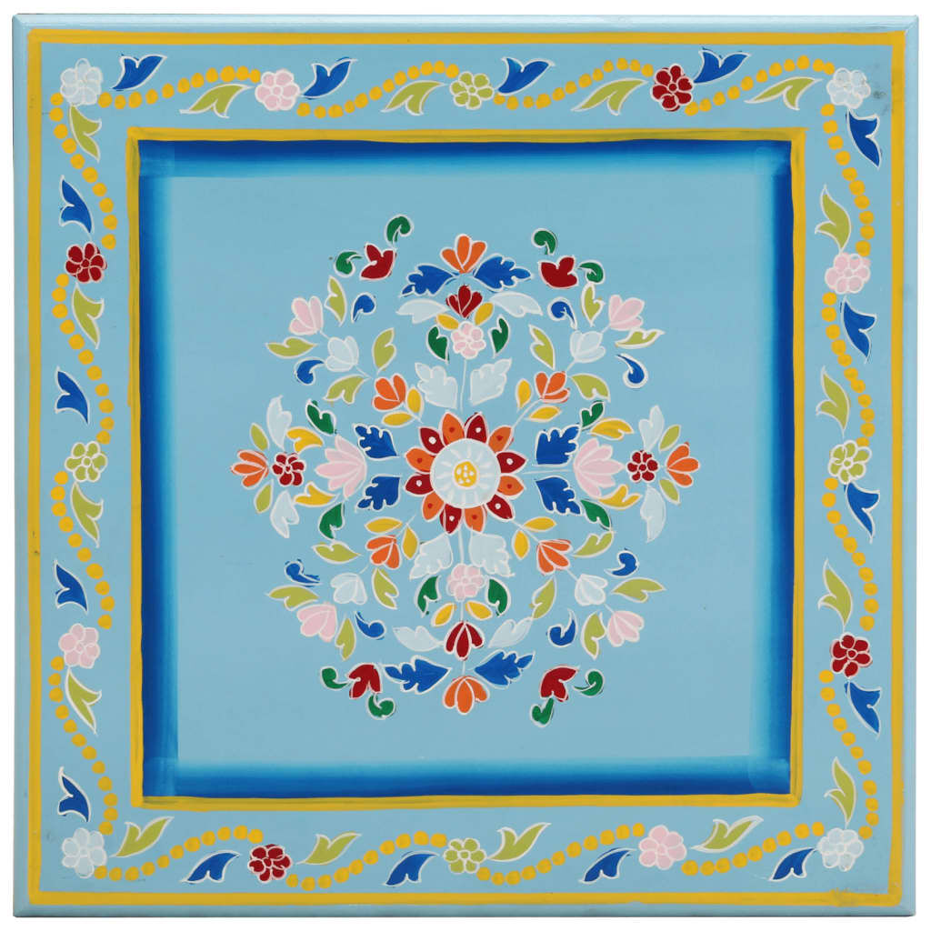 $97.60This wooden coffee table with rich hand-painted decorations will make an eye-catching addition to your living room. Solid mango wood: Solid mango wood is a strong, tropical hardwood that makes sturdy furniture. Its beautiful wood grains make every piece of furniture slightly different from the next. Made of solid mango wood, this sofa table is sturdy and durable.Hand-painted design: The side table features extensive hand-painted decorative details, which add warmth and elegance to your room.Sturdy tabletop: The sturdy tabletop is perfect for placing your drinks, food, and other decorative items.