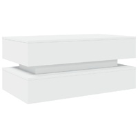 $109.69Decorate your living room with this modern coffee table with LED lights, it easily blends with furniture in any style at your house. Durable material: The engineered wood is of exceptional quality with smooth surface and also features strength, stability and resistance to moisture.Sturdy tabletop: The sturdy tabletop of this side table provides a secure surface, on which you can place drinks, vases, fruit bowls or ornaments.RGB LED lights: The couch table is equipped with vibrant RGB LED lights. With various customisable menus, you can effortlessly change the colour of the lights and even set them to adjust automatically. These LED lights not only enhance the contemporary look of the centre table but also add to its trendy appeal.Versatile design: This sofa table can meet your different requirements for it can be used as a side table, tea table or telephone table. Good to know:The product has a USB connector that requires a certified 5V USB power source (not included).
