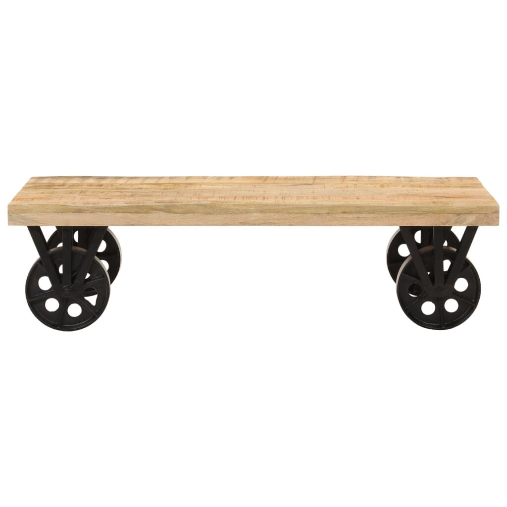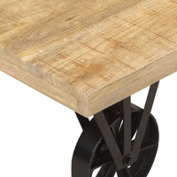 $251.99Are you looking for a coffee table for your leisure time? Look no further than this functional coffee table, which gives a unique visual experience to the area. Solid mango wood: Solid mango wood is a strong, tropical hardwood that makes sturdy furniture. Its beautiful wood grains make every piece of furniture slightly different from the next.Practical wheels: The side table is easy to move around with the equipped wheels.Sturdy top: The sturdy top of the sofa table provides a stable and secure surface for your drinks, fruit baskets or decorative items. Good to know:Colours and grains vary per furniture item, making each piece unique. The delivery is random, ensuring the exclusivity and individuality of your product.