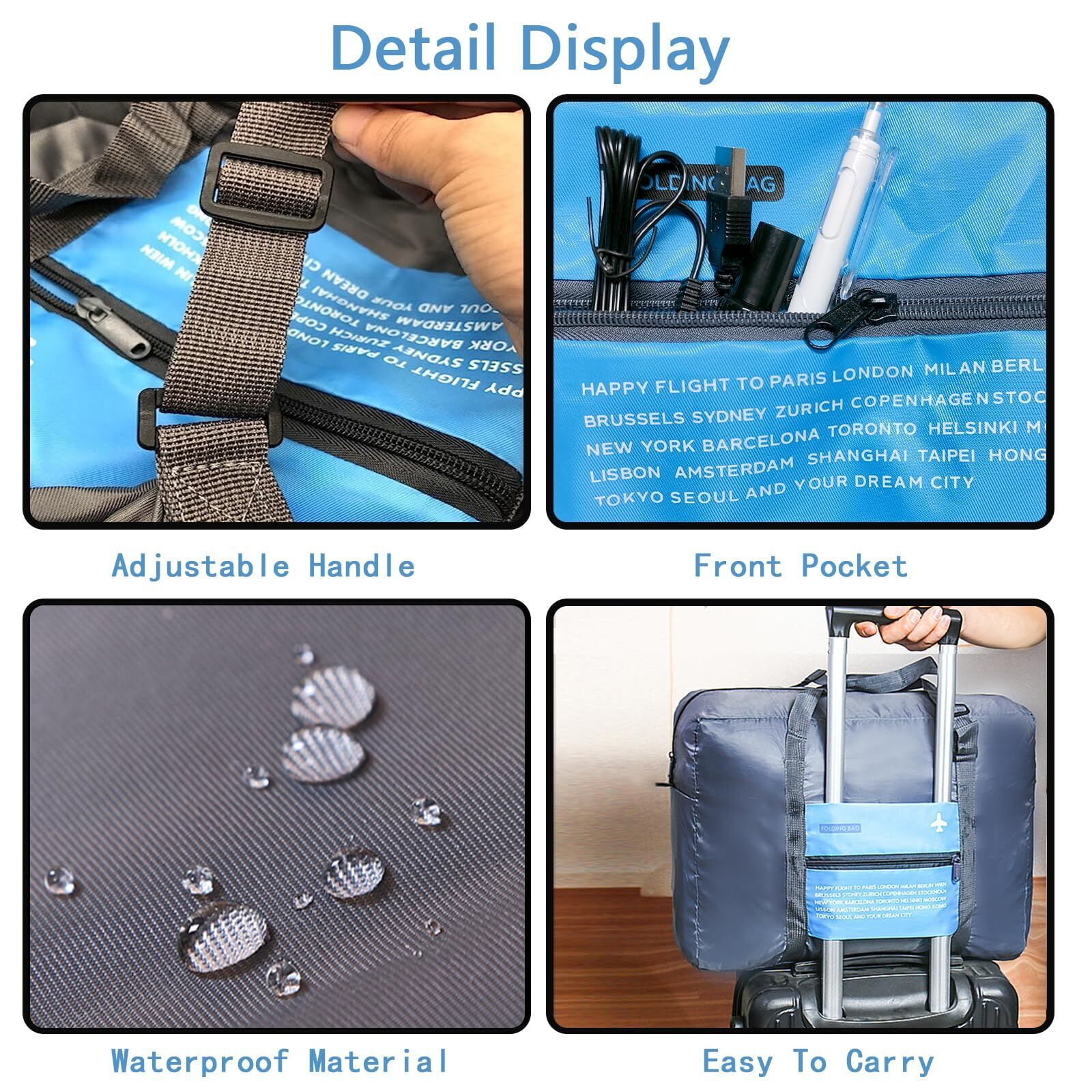 Compact Foldable Travel Duffel Bag Lightweight Carry-On for Weekend Trips, Overnight Gym Use (Blue)