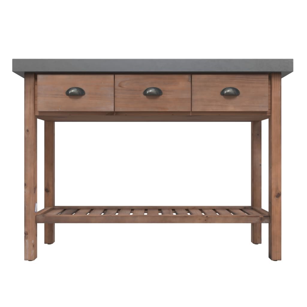 $323.99Introduce a unique charm into your living space with this stylish console table! Premium material: Solid fir wood is a beautiful natural material. Fir wood doesn't dry out or warp when exposed to moisture.Ample storage space: The side table features 3 drawers and a shelf, offering storage space to store your keys, plants, scented candles and other decorative items.Sturdy top: The hall table has a sturdy iron tabletop, making it ideal for displaying decorative objects, photo frames, potted plants, etc. Warning:In order to prevent overturning, this product must be used with the wall attachment device provided.