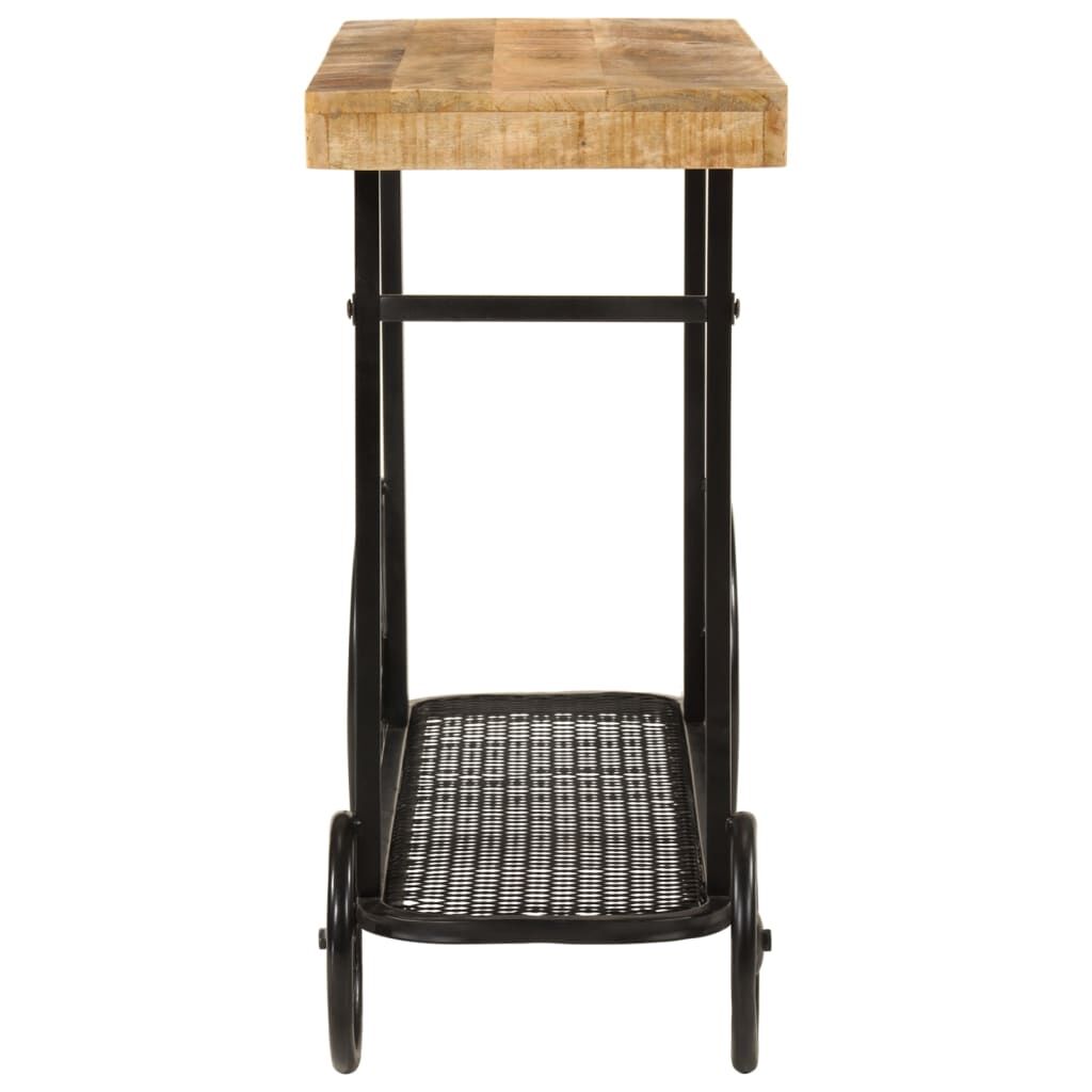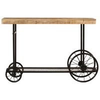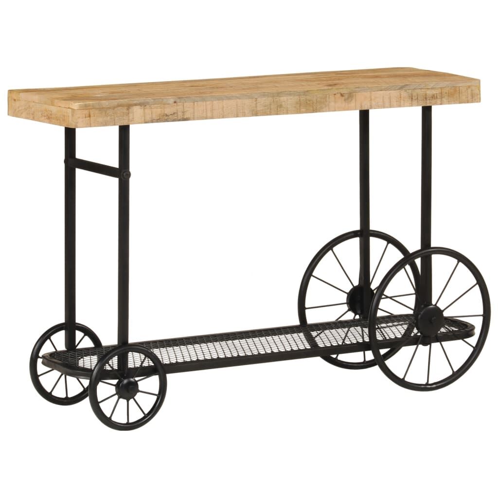 $243.89Introduce an air of industrial charm into your living space with this console table! Solid mango wood: Solid mango wood is a strong, tropical hardwood that makes sturdy furniture. Its beautiful wood grains make every piece of furniture slightly different from the next. Made of solid mango wood, the table is durable and stable.Ample storage space: This side table features a spacious top surface, on which you can place a vase of flowers, framed photos, or other decorative ornaments, and a mesh shelf for extra storage space.Sturdy frame: The powder-coated iron frame is adorned with decorative wheels and adds to the hall table's durability as well as its industrial look. Warning:To prevent it being overturned, this product must be used with the provided wall attachment device. Good to know:Colours and grains vary per furniture item, making each piece unique. The delivery is random, ensuring the exclusivity and individuality of your product.The wheels are only for decoration and can't turn.