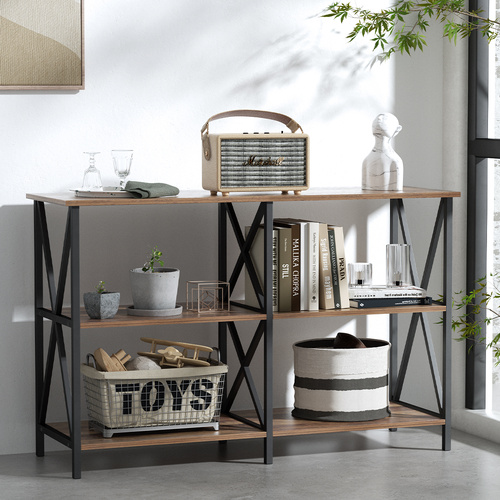 $302.09This wooden console table exudes a vintage charm and will be the centre of attraction for your interior. Made of solid mango wood, this entryway table is exceedingly stable and durable. Mango wood is a dense and robust hardwood which has beautiful brown or golden streaks and contours on its surface. The powder-coated steel frame brings extra stability. Every step of the process is carried out with the greatest care, be it polishing, painting or lacquering. Additionally, this hall table features 1 drawer and 2 compartments, providing ample space for storing your multimedia devices, books, as well as various other items. The console table is already assembled; no assembly is required. Important note: The wood grains vary from piece to piece, making each piece unique; the delivery is random.