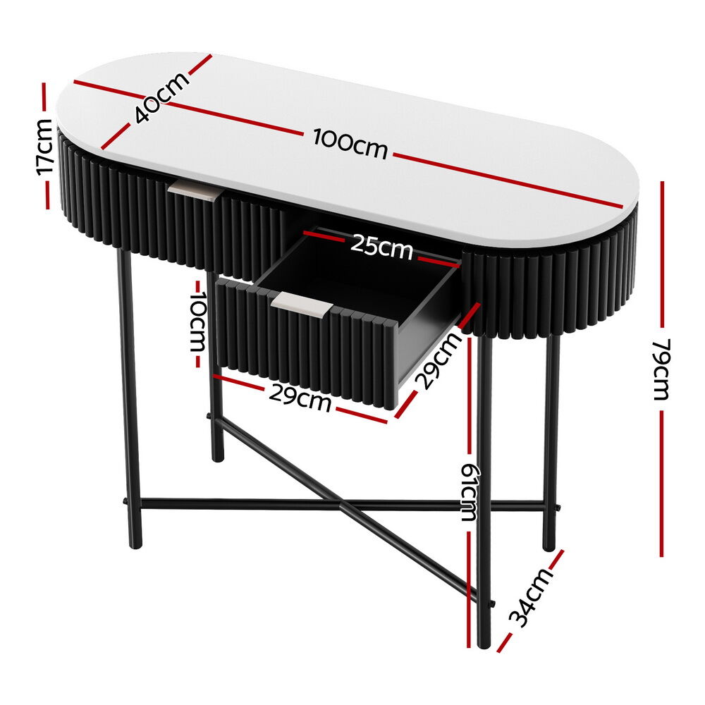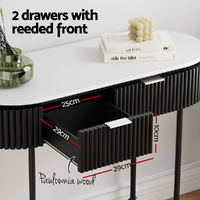 $167.39For a stylishly designed product to showcase your favourite items, you'll adore the Romeo Console Table from Artiss. With a beautiful paulownia wood reeded front that adds a touch of elegance to every room, this product can be used in a wide variety of settings including your living room, bedroom and office. Constructed from thick MDF board atop a solid metal base, the console table is durable, sturdy and long-lasting. Two generous storage drawers and a wide tabletop allow you to store and display both your daily essentials and your household trinkets, books, board games, and more. The easy assembly process allows for quick setup, saving you time and effort. Experience the perfect combination of style and functionality with our Romeo Console Table, designed to enhance any space with its sleek design and practical features.