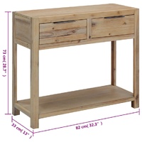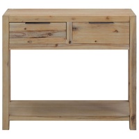 $260.09This console table will add a touch of rustic charm to your interior. This console table is made of solid acacia wood with a brushed finish, MDF and acacia veneer, which makes it sturdy and stable.The console table has a sturdy top, on which you can place decorative items like fruit baskets or vases. The shelf and 2 drawers provide ample space for keeping all kinds of smaller items organised and within reach. This product needs assembly.