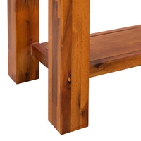 $265.49Bring a touch of rustic charm to your home decor with our solid wooden console table! The end table is made of solid acacia wood, making it sturdy, stable and durable. The solid wood has beautiful grains that give the desk a touch of natural style. This end table has 2 drawers and 1 shelf for keeping your items organised and within reach. Its sturdy top is ideal for keeping an alarm clock, or decorative items like vases, photo frames or potted plants. This table needs assembly.