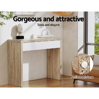 $102.59Brighten up your entryway with the Artiss Jory Console Table. Its Scandinavian-inspired, two-tone, minimalist design will blend in seamlessly with most contemporary home interiors. It is crafted from sturdy 40mm thick particle board and hollow board with a smooth, natural wood grain finish. One spacious white drawer has plenty of room for all your daily essentials and accessories, and the generous tabletop provides ample space for décor, trinket trays, mirrors and more. The table features anti-scratch feet to protect your precious floors, and the whole piece is easy to assemble with all parts included. Practical, functional and stylish, the Artiss Jory Console Table is the perfect piece for your entryway, living room or dining room.