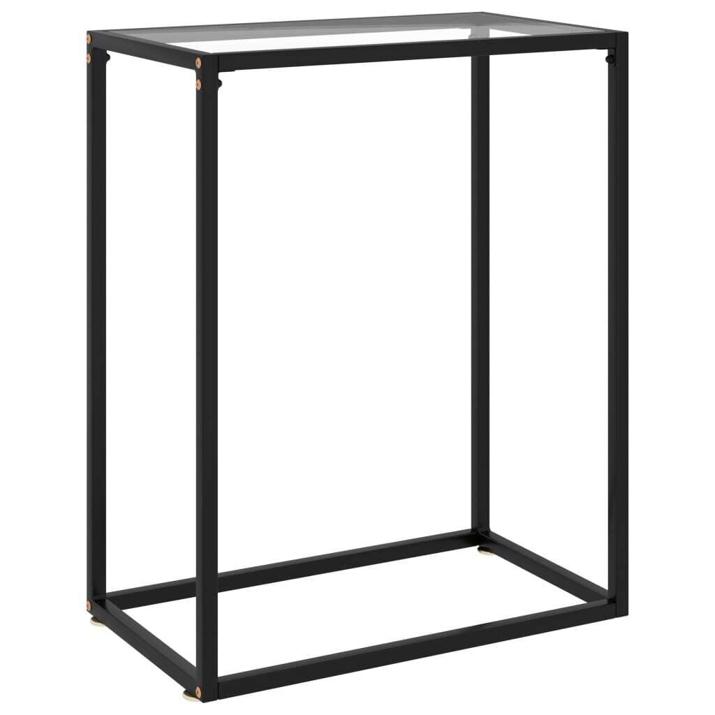$78.29This console table is perfect for bringing a simplistic yet modern appearance to your living space. This side table is made of tempered glass and powder-coated steel, making it exceedingly sturdy and stable. The end table is easy to clean with a damp cloth.