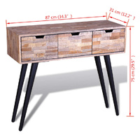 $405.89This wooden console table is a timeless accessory for your home. Its solid wood top provides ample space to display decorative objects, photo frames, or even potted plants, while you can keep small items like keys, notepads, pens, and other knick-knacks in its three spacious drawers. It can also be used as console cabinets, sideboards, high cabinets, side tables, etc. This exotic console table is made of reclaimed wood, which means that every piece of furniture is unique and slightly different from the next. Reclaimed wood is solid, stable, durable and beautiful. It is partly handmade, and the craftmanship adds to the unique vintage style of this console table. Great care is taken at every step of the production process, be it recombining, polishing or painting. This vintage table will make a great addition to your home! Important note: Colours vary from piece to piece, making each of our tables unique. The delivery is random, ensuring the exclusivity and individuality of your product.