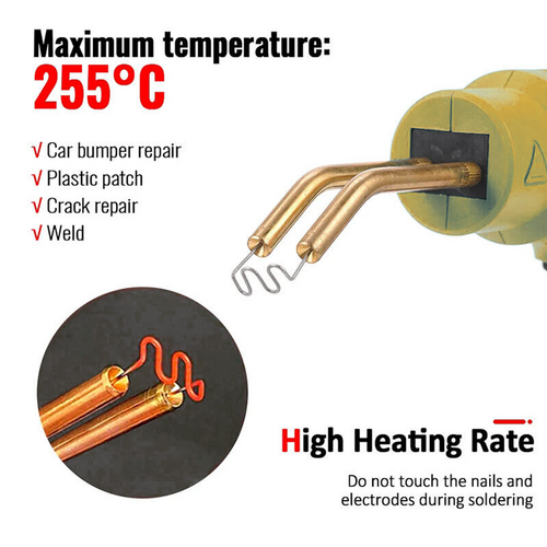 Repairs at least 98% of the plastics on the market. Perfect for repairing: bumper, dashboard, lamp holder, plastic ring, radiator, spoiler, handles, headlights, plastic wings, car and motorcycle plastic device, etc.