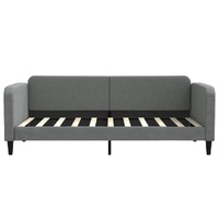 $318.59This 2-in-1 day bed, serving as both a sofa and bed, makes a practical and eye-catching addition to your living room or bedroom. Versatile day bed: The sofa bed can be used as a sofa during the day, or as a bed at night to offer a quick solution to accommodate overnight guests.Comfortable experience: The daybed is made of fabric. The fabric features a simple and clean look while remaining breathable and long-lasting. In addition, the backrest and armrests of the guest bed are padded with foam to improve the seating experience.Sturdy and stable frame: The main frame of the sleeper sofa is made of metal and solid wood, making it very sturdy and durable. These plywood slats allow better air circulation to keep the mattress fresher for longer while improving the weight capacity and ensuring stability.Modern design: The couch bed has a modern design that features clean lines, a minimalistic look, as well as natural light, and will add a modern style to your interior! Good to know:A mattress is not included with this bed. We do offer a various selection of mattresses. You can check our shop for a matching mattress.
