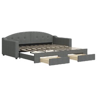 $443.69This 2-in-1 daybed with trundle, serving as both a sofa and bed, makes a practical and eye-catching addition to your living room or bedroom. Versatile daybed: The sofa bed functions as a sofa during the day and easily converts into a double bed at night by pulling out the trundle, providing a convenient solution for hosting guests and maximising space. Ample storage space: This guest bed has two drawers with wheels that provide ample space for storing your clothes, socks, toys, cushions, etc. Durable fabric and solid construction: This day bed sofa has a sturdy frame made of wood and metal and is upholstered in durable and comfortable fabric. Good to know:Mattresses are not included with this daybed. We do offer a various selection of mattresses. You can check our shop for matching mattresses.