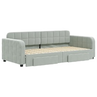 NOW $500.33This 2-in-1 daybed with trundle, serving as both a sofa and bed, makes a practical and eye-catching addition to your living room or bedroom. Versatile daybed: The sofa bed functions as a sofa during the day and easily converts into a double bed at night by pulling out the trundle, providing a convenient solution for hosting guests and maximising space. Ample storage space: This guest bed has two drawers with wheels that provide ample space for storing your clothes, socks, toys, cushions, etc.Soft velvet and solid construction: This day bed sofa has a sturdy frame made of wood and metal and is upholstered in soft and comfortable velvet. Good to know:Mattresses are not included with this bed. We do offer a various selection of mattresses. You can check our shop for matching mattresses.