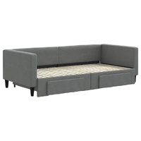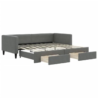 $458.99This 2-in-1 daybed with trundle, serving as both a sofa and bed, makes a practical and eye-catching addition to your living room or bedroom. Versatile daybed: The sofa bed functions as a sofa during the day and easily converts into a double bed at night by pulling out the trundle, providing a convenient solution for hosting guests and maximising space. Ample storage space: This guest bed has two drawers with wheels that provide ample space for storing your clothes, socks, toys, cushions, etc. Durable fabric and solid construction: This day bed sofa has a sturdy frame made of wood and metal and is upholstered in durable and comfortable fabric. Good to know:Mattresses are not included with this daybed. We do offer a various selection of mattresses. You can check our shop for matching mattresses.