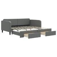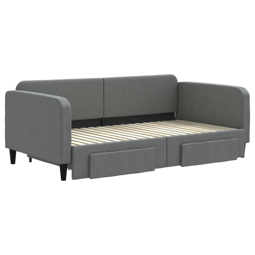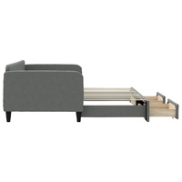 $467.09This 2-in-1 daybed with trundle, serving as both a sofa and bed, makes a practical and eye-catching addition to your living room or bedroom. Versatile daybed: The sofa bed functions as a sofa during the day and easily converts into a double bed at night by pulling out the trundle, providing a convenient solution for hosting guests and maximising space.Ample storage space: This guest bed has two drawers with wheels that provide ample space for storing your clothes, socks, toys, cushions, etc.Durable fabric and solid construction: This day bed sofa has a sturdy frame made of wood and metal and is upholstered in durable and comfortable fabric. Good to know:Mattresses are not included with this daybed. We do offer a various selection of mattresses. You can check our shop for matching mattresses.