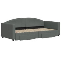 $439.19This 2-in-1 daybed with trundle, serving as both a sofa and bed, makes a practical and eye-catching addition to your living room or bedroom. Versatile daybed: The sofa bed functions as a sofa during the day and easily converts into a double bed at night by pulling out the trundle, providing a convenient solution for hosting guests and maximising space.Ample storage space: This guest bed has two drawers with wheels that provide ample space for storing your clothes, socks, toys, cushions, etc.Durable fabric and solid construction: This day bed sofa has a sturdy frame made of wood and metal and is upholstered in durable and comfortable fabric. Good to know:Mattresses are not included with this bed. We do offer a various selection of mattresses. You can check our shop for matching mattresses.