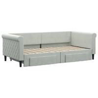 $467.09This 2-in-1 daybed with trundle, serving as both a sofa and bed, makes a practical and eye-catching addition to your living room or bedroom. Versatile daybed: The sofa bed functions as a sofa during the day and easily converts into a double bed at night by pulling out the trundle, providing a convenient solution for hosting guests and maximising space.Ample storage space: This guest bed has two drawers with wheels that provide ample space for storing your clothes, socks, toys, cushions, etc.Soft velvet and solid construction: This day bed sofa has a sturdy frame made of wood and metal and is upholstered in soft and comfortable velvet.Modern design: The couch bed has a modern design that features clean lines, a minimalistic look, as well as natural light, and will add a modern style to your interior! Good to know:Mattresses are not included with this bed. We do offer a various selection of mattresses. You can check our shop for matching mattresses.