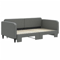 This 2-in-1 daybed with trundle, serving as both a sofa and bed, makes a practical and eye-catching addition to your living room or bedroom. Versatile daybed: The sofa bed functions as a sofa during the day and easily converts into a double bed at night by pulling out the trundle, providing a convenient solution for hosting guests and maximising space.Durable fabric: The guest bed is made of fabric. The fabric features a simple and clean look while remaining breathable and long-lasting.Solid construction: The wooden and metal frame of the sleeper bed ensures sturdiness and stability. Good to know:Mattresses are not included with this daybed. We do offer a various selection of mattresses. You can check our shop for matching mattresses.
