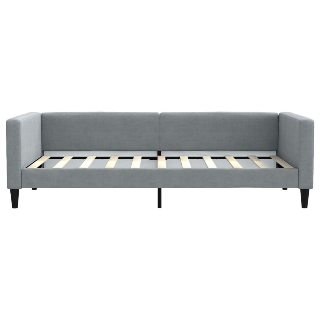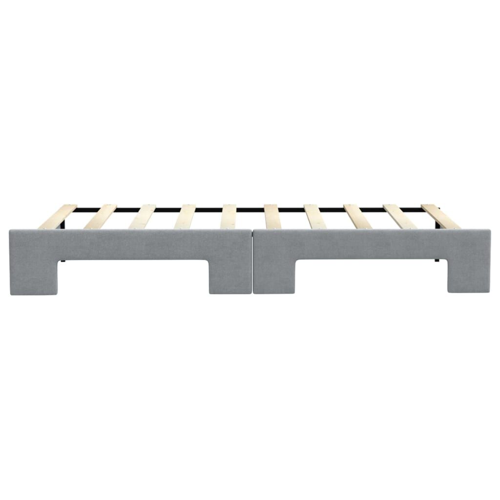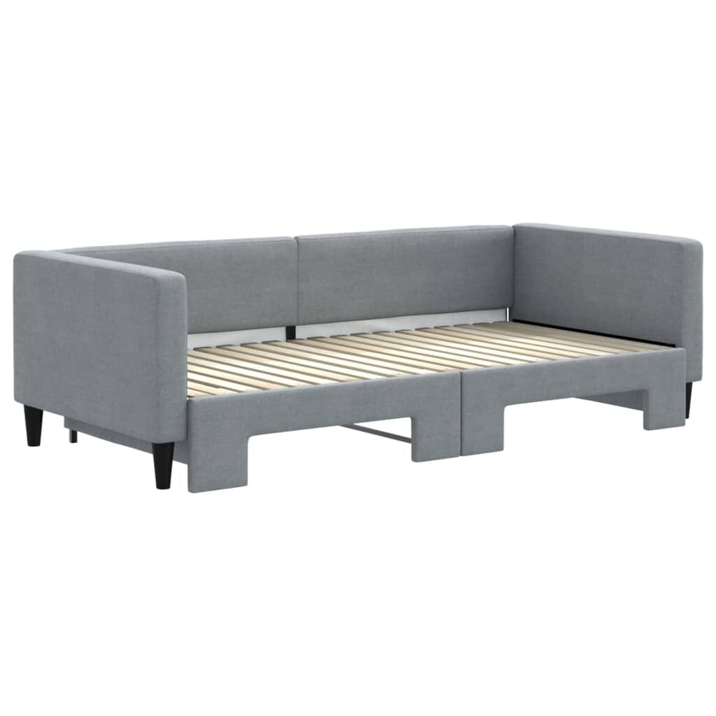 This 2-in-1 daybed with trundle, serving as both a sofa and bed, makes a practical and eye-catching addition to your living room or bedroom. Versatile daybed: The sofa bed functions as a sofa during the day and easily converts into a double bed at night by pulling out the trundle, providing a convenient solution for hosting guests and maximising space. Durable fabric: The guest bed is made of fabric. The fabric features a simple and clean look while remaining breathable and long-lasting. Solid construction: The wooden and metal frame of the sleeper bed ensures sturdiness and stability. Good to know:Mattresses are not included with this daybed. We do offer a various selection of mattresses. You can check our shop for matching mattresses.