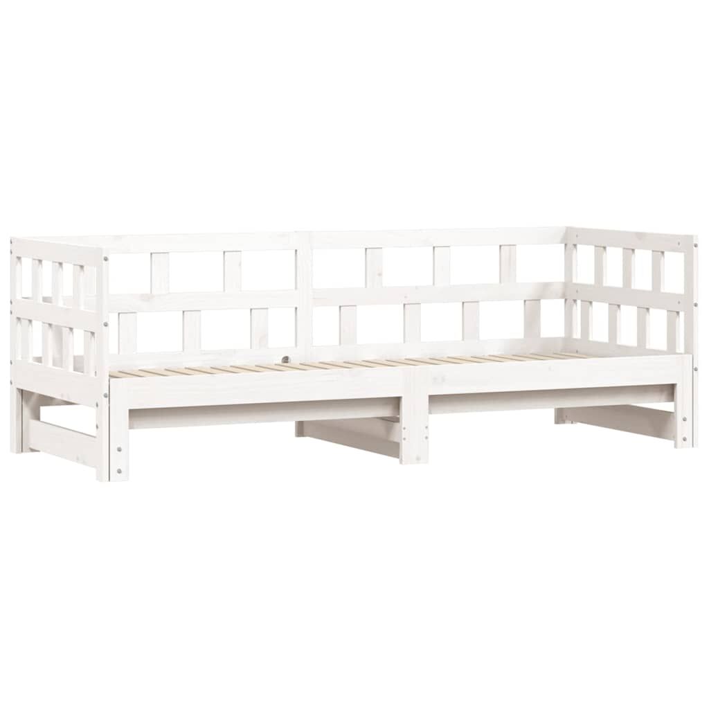 $306.89This 2-in-1 daybed with trundle, serving as both a sofa and bed, makes a practical and eye-catching addition to your living room or bedroom. Solid pinewood: Solid pine wood is a beautiful natural material. Pine wood has a straight grain, and the knots give the material its signature, rustic look. The guest bed is made of solid pine wood for stability and durability.Versatile daybed: The sofa bed functions as a sofa during the day and easily converts into a double bed at night by pulling out the trundle, providing a convenient solution for hosting guests and maximising space.Extra storage space: There is extra space under the daybed, allowing you to put drawers or storage boxes for storing your clothes, socks, toys, cushions, etc. Good to know:The delivery includes a daybed frame only. The mattress is not included. You can check our shop for the matching mattresses.