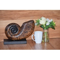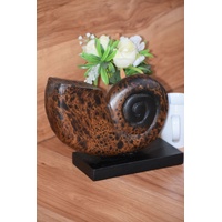 Realistic beautiful Wooden shell on stand carved by hand by our local artisan in Chang Mai northern Thailand.