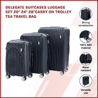 $296.09If travel is in your plans, don't leave home without this gorgeous three-piece set of luggage by Delegate. Featuring secured TSA-approved locks on the two larger bags, this set of trolley bags comes in three sizes: 20 inches, 24 inches, and 28 inches. With a soft inner mesh lining and a cross-strap to secure your belongings, your clothing, shoes, and cosmetics will be in good hands. On the outside, corner guard protectors, as well as side and top handles, keep it safe and convenient, even in the hands of rough baggage handlers.