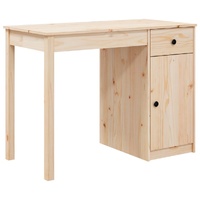 $183.59This stylish wooden desk, featuring a simple and practical design, is definitely meant to be the focal point of your room. Solid pine wood: Solid pine wood is a beautiful natural material. Pine wood has a straight grain, and the knots give the material its signature, rustic look. This office desk is made of solid wood for extra sturdiness and durability.Ample storage space: The study desk has 1 drawer and 1 cabinet, providing storage space for you to keep books, files or other essentials within reach.Spacious desktop: The desktop is ideal for placing your computer, keyboard and mouse or notebook to write or read comfortably.Wide applications: This standing desk can be used as a computer desk, writing desk and working table. It is suitable for study, office and any space decoration styles. Warning:In order to prevent overturning, this product must be used with the wall attachment device provided. Note:Each product comes with an assembly manual in the box for easy assembly.