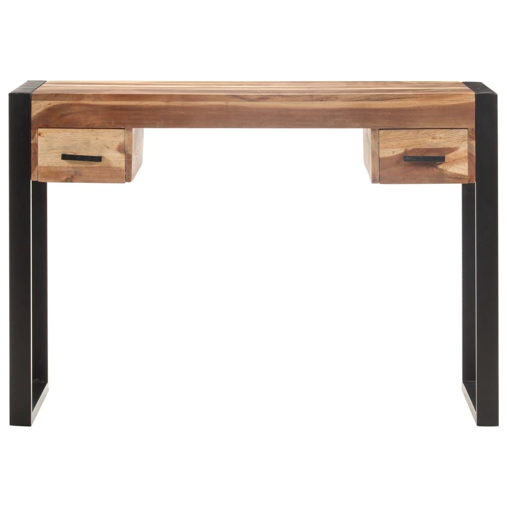 NOW $309.68This stylish wooden desk is practical and is meant to be an attractive focal point of your room. This vintage-style desk, made of solid acacia and rubberwood, is a timeless addition to your home. Every step of the process is carried out with the greatest care, be it polishing, painting or lacquering. The desk is sturdy and durable with its strong steel frame. The tabletop provides a stable and secure surface to place your drinks, a fruit basket or vase or other decorative items. It has two drawers that provide ample space for storing small items such as keys and notepads. The desk can be used as a computer table, worktable, office desk, reading table, study table, etc. It can also be used as a sideboard or console table. Important note: Colours vary from piece to piece, making each of our desks unique. The delivery is random, ensuring the exclusivity and individuality of your product.