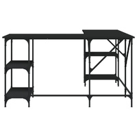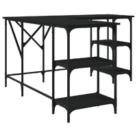 $134.99This simplistic desk is meant to be a practical as well as a decorative choice for your living space! Durable material: The engineered wood is of exceptional quality with smooth surface and also features strength, stability and resistance to moisture. Made of engineered wood, the office desk is easy to clean.Ample storage space: This computer desk with shelves offers ample storage space to keep your computer, folders, documents, decorations and other essentials well organised and within reach.L-shaped design: The writing desk features an L-shaped design, making it easy to fit snugly in any corner to maximise your limited space.Adjustable feet: The adjustable feet with plastic pads keep the standing desk balanced on uneven ground and increase stability.Metal frame: The metal frame adds an industrial style to your interior while ensuring durability and stability. Warning:To prevent it being overturned, this product must be used with the provided wall attachment device.