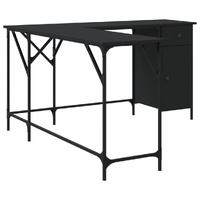 $123.29This simplistic desk is meant to be a practical as well as a decorative choice for your living space! Durable material: The engineered wood is of exceptional quality with smooth surface and also features strength, stability and resistance to moisture. Made of engineered wood, the office desk is easy to clean.Ample storage space: This computer desk offers ample storage space to keep your computer, folders, documents, decorations and other essentials well organised and within reach.L-shaped design: The writing desk features an L-shaped design, making it easy to fit snugly in any corner to maximise your limited space.Adjustable feet: The adjustable feet with plastic pads keep the standing desk balanced on uneven ground and increase stability.Metal frame: The metal frame adds an industrial style to your interior while ensuring durability and stability. Warning:To prevent it being overturned, this product must be used with the provided wall attachment device.