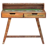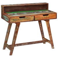 $282.59This vintage-style wooden desk, made of solid reclaimed wood, will make a timeless addition to your home. The tabletop provides a stable and secure surface on which you can place your drinks, a fruit basket or vase or other decorative items. It has two drawers, which provide ample space for storing small items such as keys, notepads, and other knick-knacks. The desk can be used as a computer table, worktable, office desk, reading table, study table, etc. The desk is made of recycled wood, which means every piece of furniture is unique and slightly different from the next. Furniture made of reclaimed wood has the characteristics of different woods, like teakwood, acacia, mango wood, saal wood, etc. Reclaimed wood is solid, stable, durable, and beautiful. Signs of wear and visible grain structure give each piece its own history and unique look. The desk is fully handmade, and the craftsmanship adds to its spectacular retro style. Every step of the process is carried out with the greatest care, be it recombining, polishing, painting or waxing. Important note: Colours vary from piece to piece, making each of our desks unique. The delivery is random, ensuring the exclusivity and individuality of your product.