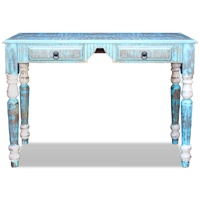 $313.19This vintage-style wooden desk, made of solid reclaimed wood, will make a timeless addition to your home. The tabletop provides a stable and secure surface on which you can place your drinks, a fruit basket or vase or other decorative items. It has two drawers, which provide ample space for storing small items such as keys, notepads, and other knick-knacks. The desk can also be used as a sideboard, console table, lowboard, computer desk, worktable, office desk, reading table, study table, etc. The desk is made of recycled wood, which means every piece of furniture is unique and slightly different from the next. Furniture made of reclaimed wood has the characteristics of different woods, like teakwood, acacia, mango wood, saal wood, etc. Reclaimed wood is solid, stable, durable, and beautiful. Signs of wear and visible grain structure give each piece its own history and a unique look. The desk is fully handmade, and the craftsmanship adds to its spectacular retro style. Every step of the process is carried out with the greatest care, be it recombining, polishing, painting or waxing. Important note: Colours vary from piece to piece, making each of our desks unique. The delivery is random, ensuring the exclusivity and individuality of your product.