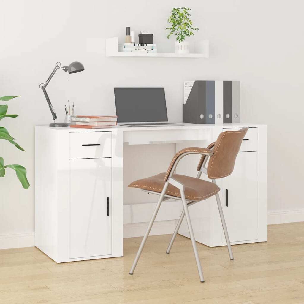 Use this desk with cabinets to add an air of elegant charm to your study or working area. Durable material: The engineered wood is of exceptional quality with a smooth surface and features strength, stability and resistance to moisture.Ample storage space: The office desk and cabinet offer ample storage space for keeping your various books, magazines, file folders and other essentials well organised and within easy reach.Practical door: The desk organiser features doors, which can protect your things from dust and dirt. Displaying function: You can also place your favourite photos, decorations or flowers on top of the storage cabinet to enrich your life. Good to know:To make assembly as easy as possible, each product is delivered with a manual. Warning:To prevent it being overturned, this product must be used with the provided wall attachment device
