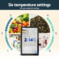 Our portable Devanti Bar Fridge is great for keeping a variety of food and beverages chilled and cooled without taking up too much space. Designed with six temperature settings, the energy-efficient bar fridge lets you set your desired coolness and freshness. Other great features include adjustable shelves, double-glazed door, height-adjustable feet, built-in handle and consistent refrigeration to name a few. The compact bar fridge is well-made for robust use, such as the extra thick insulation and a built-in LED lamp to ensure operation is smooth, quiet and hassle-free. This versatile countertop fridge can also be used as a freestanding unit.An ideal mini fridge for any space.
