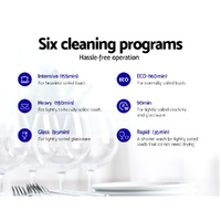 The quiet-operation benchtop dishwasher features eight place settings and six cleaning programs, from intensive to rapid, and a delay start function for that perfect wash. The easy-to-use LED screen display easily guides you along with clear setting indicators for effortlessly dishwashing. Not least, it comes with all the accessories to accommodate your various kitchen, dining and cooking wares and you easily add in left-out dishes to the washing cycle.
