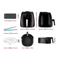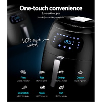$104.49With its stunning all-black design, the Devanti Air Fryer turns the ordinary into the extraordinary. And that goes too for its exceptional cooking abilities. With its innovative air frying technology and 1800W of power, your cooking is done efficiently and thoroughly with less odours. Thanks to its turbo air power that is circulated 360 degrees. Better still, all the wonderful cooking is done without a single drop of oil and yet is as delicious and sumptuous as traditional methods. In fact, up to 80% less fat than oil fried foods. Just set in the time, cooking mode (up to seven to choose from) and temperature on the LCD display and leave all the hard work to the air fryer. Other great features include a 2-hr keep warm function, an auto shut-off function, non-stick pan, heat shield vent for good air circulation, bonus food divider, grill rack and tongs, and not least, easy to clean with dishwasher-safe components.