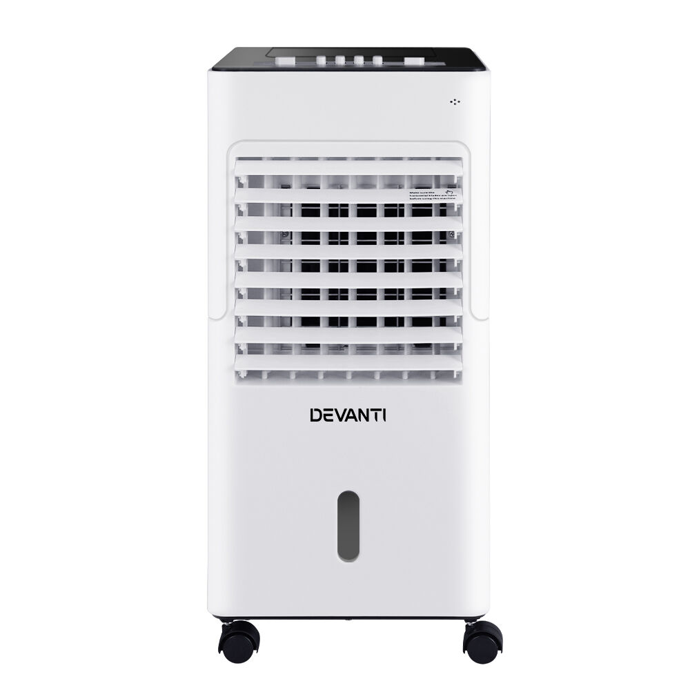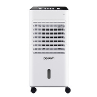 $92.69Our Devanti Evaporative Air Cooler is an air cooler and humidifier rolled into one compact and stylish machine. To use it as an air cooler, simply prepare the included ice crystals according to instructions, leave it in the 6L water tank and turn on the evaporative cooler to get super cool breezes throughout the room with its adjustable louvres and oscillation. The removable filters and the built-in ioniser together effectively eliminate all pollutants such as dust, pollen, cigarette smoke, bacteria and odours, to deliver purified air. The evaporative air cooler utilises an energy-efficient 3-speed cyclone fan and is fitted with four castor wheels for easy mobility. Not least, the button control panel enables easy operation with minimum hassle.