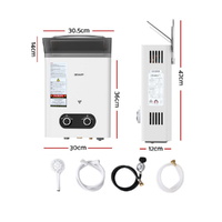 Experience the luxury of a warm shower in the great outdoors with the Devanti Gas Water Heater. This versatile and efficient outdoor showering solution offers convenience, clearly displayed on its LED screen. Safety is paramount, with a built-in processor limiting the maximum water temperature to 60�C, to help preventing any accidents. The showerhead features an automatic on/off trigger for easy operation, while a variety of additional safety features ensure worry-free use. Designed for portability and ease of use, the Devanti Gas Water Heater comes equipped with a handy carry handle and all necessary mounting brackets for quick and hassle-free setup. Its lightweight construction makes it ideal for camping trips, beach outings, or any outdoor adventure where a warm shower is desired. With both winter and summer settings and adjustable water flow this LPG-powered heater offers a perfect blend of comfort and practicality for outdoor enthusiasts. Enjoy the freedom of the open country without sacrificing the comfort of a warm shower � the Devanti Gas Water Heater is your perfect outdoor companion.